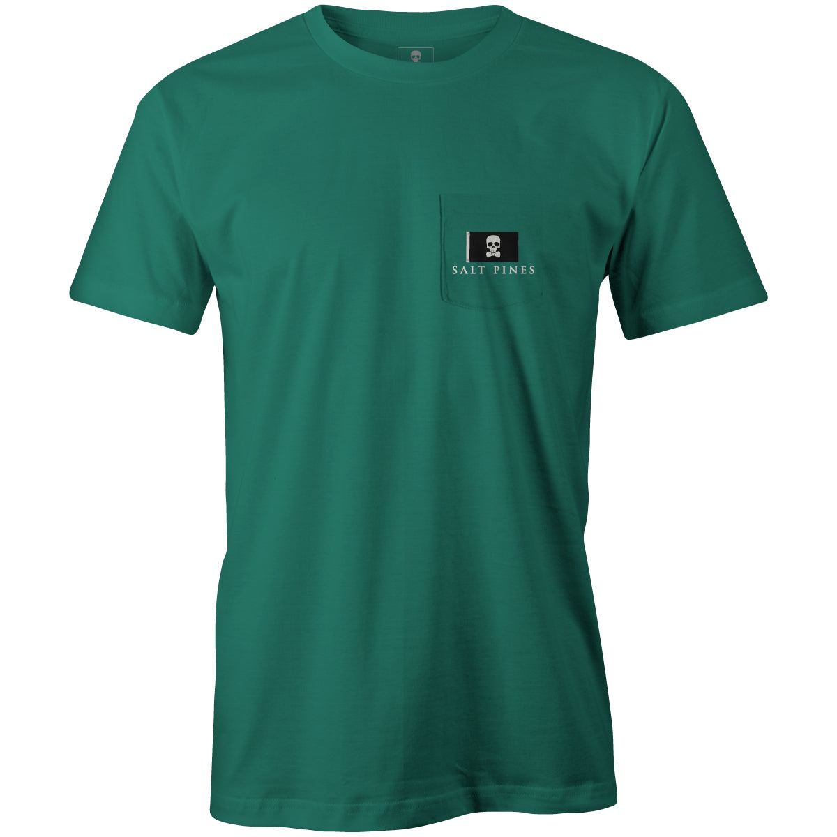 A timeless Salt Pines staple. The Original Logo Pocket Tee features our signature Jolly Roger flag across the back and on the chest pocket. Confident, understated, and rooted in coastal tradition.