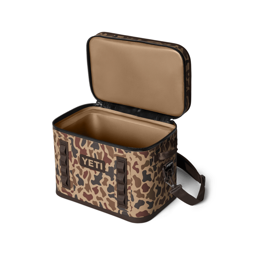 The YETI Hopper Flip 18 Soft Cooler in Wetlands Camo is built for adventurers who demand durability, performance, and portability. With enough capacity to hold up to 20 cans (with ice), this soft cooler keeps contents cold for days thanks to its ColdCell™ Insulation. The waterproof DryHide™ Shell is designed to resist punctures, abrasions, and UV rays, while the leakproof HydroLok™ Zipper locks in cold and prevents spills. Featuring MOLLE attachment points, a wide-mouth opening for easy access, and YETI’s signature toughness, the Hopper Flip 18 is the ultimate companion for hunting trips, fishing excursions, camping, or any outdoor pursuit.