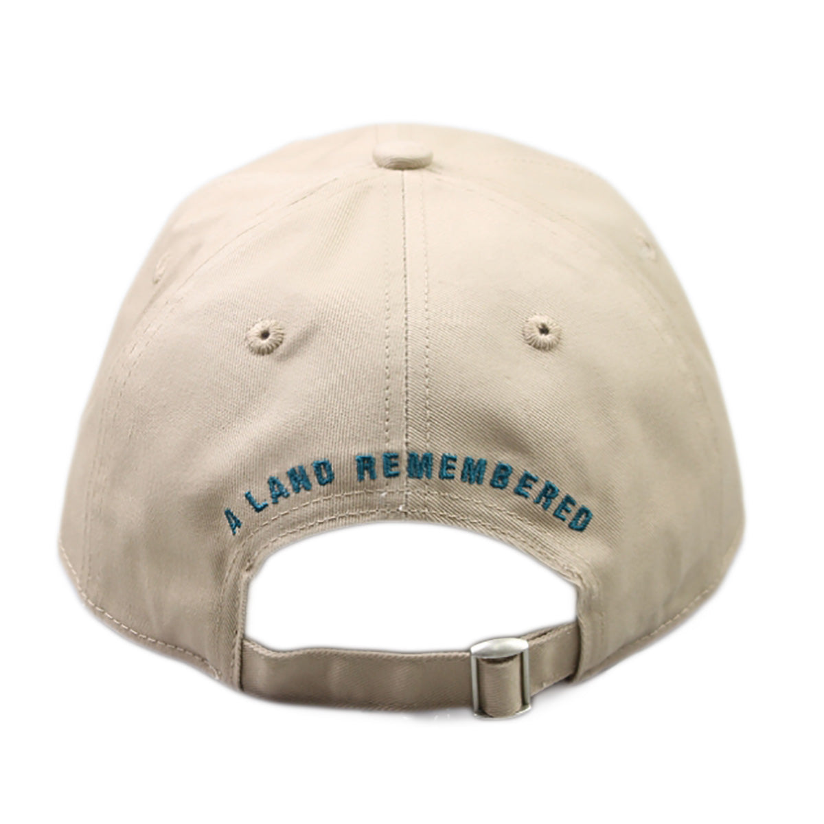 The front features a beautifully stitched Cracker cow standing beside a palmetto—an embroidered nod to the cattlemen, scrub country, and untamed wilderness that shaped early Florida life. On the back, A Land Remembered is arched in matching embroidery, giving the hat a clean, finished look from every angle.
