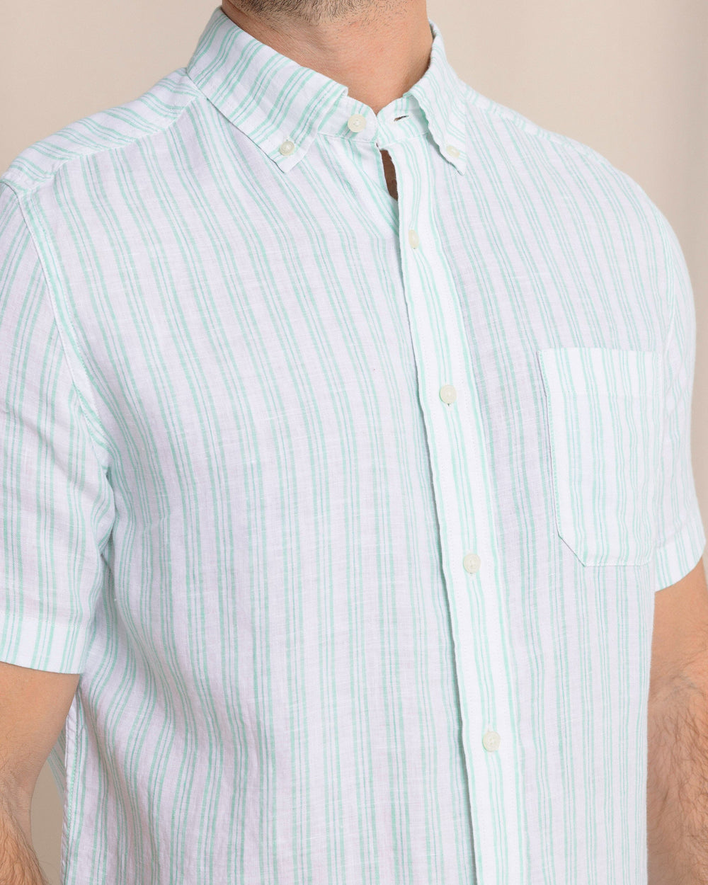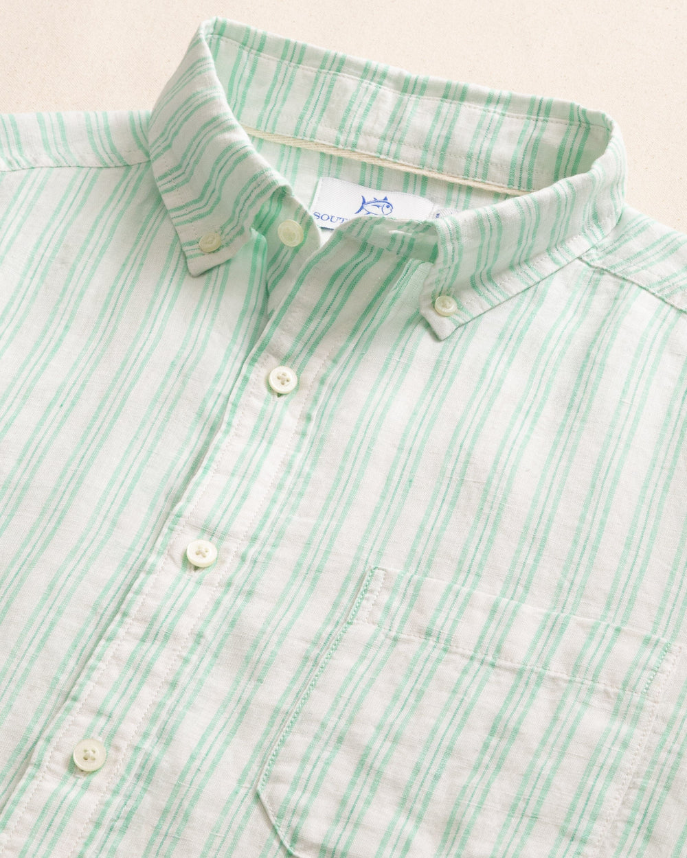 Nothing says Southern style like a crisp linen shirt in warm weather. Premium details, like a button-down collar and left chest pocket, add a timeless element to your spring or summer wardrobe, while branded coconut buttons and a variety of bright colors bring a modern touch to a classic outfit. White herringbone back neck tape and a Skipjack flag label at the bottom left hem complete the look.